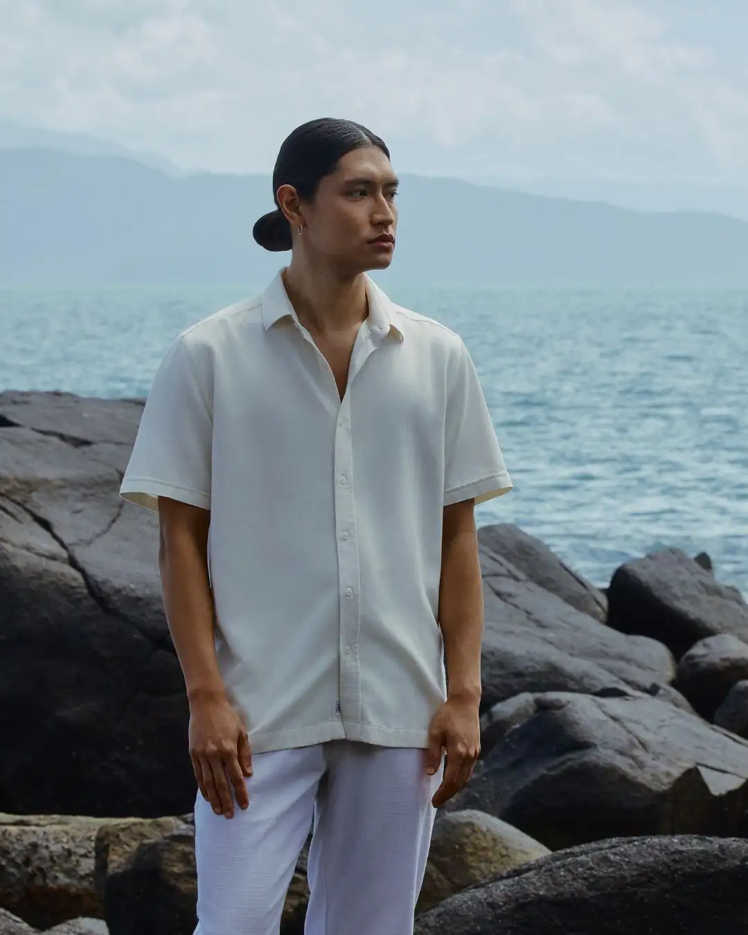 Construímos uma narrativa visual para a Oriba partindo de um conceito claro: o Ano Novo como um recomeço fundamentado e sereno. A paleta em branco e areia, em diálogo com a solidez das pedras e o movimento do mar, traduz a elegância atemporal e a conexão com a natureza que a marca representa. Cada frame é resultado de uma escolha intencional para comunicar pureza, renovação e estilo consciente.
